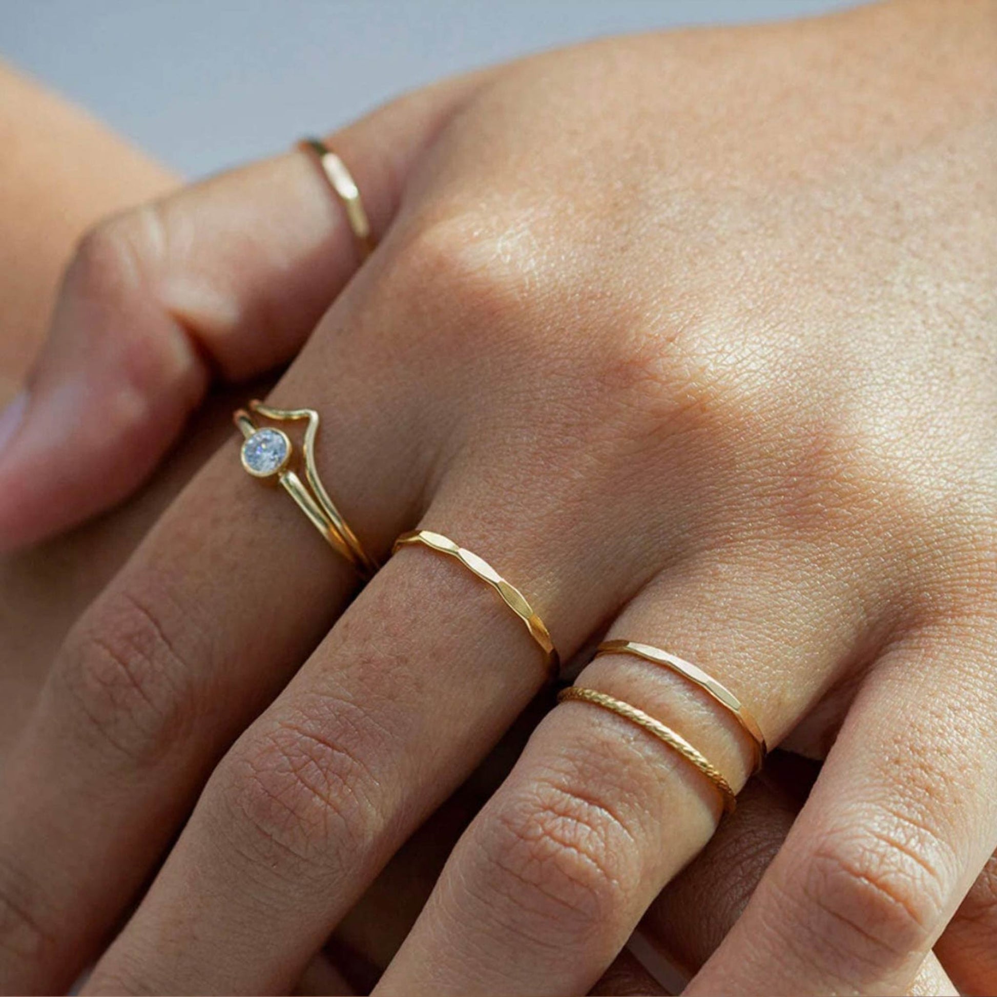 Ein hübscher Ringstapel aus 3 Ringen in der gleichen Größe, der unseren beliebten April-Geburtssteinring mit weißem Topas enthält. Hergestellt von Lunar James.