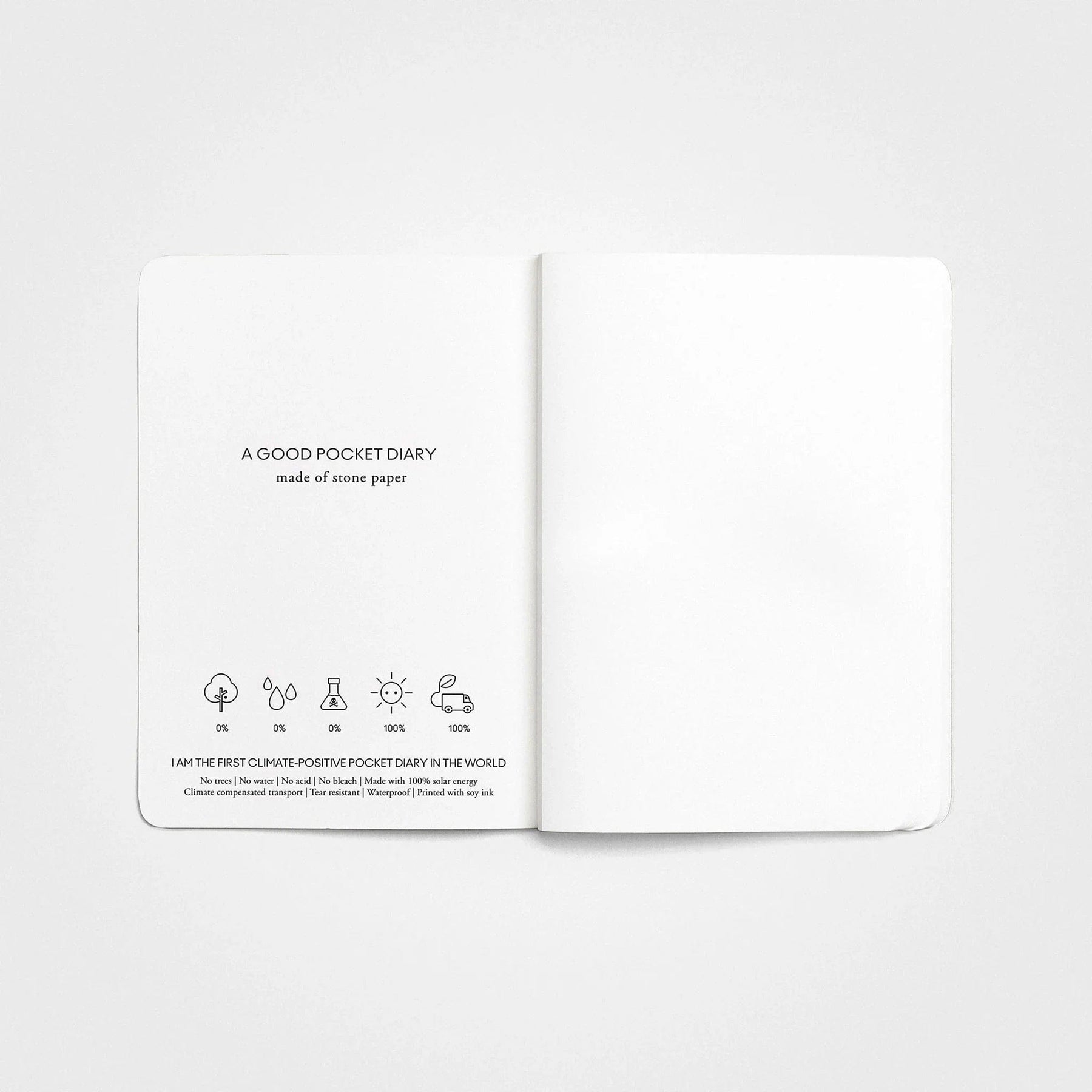 Dieses schneeweiße, klimapositive Steinpapier-Notizbuch im Taschenformat ist (wie) für den Planeten gemachht! Kein Holz, keine Wasserverschwendung und keine schädlichen Chemikalien. Nur glatte, wasserfeste Seiten.