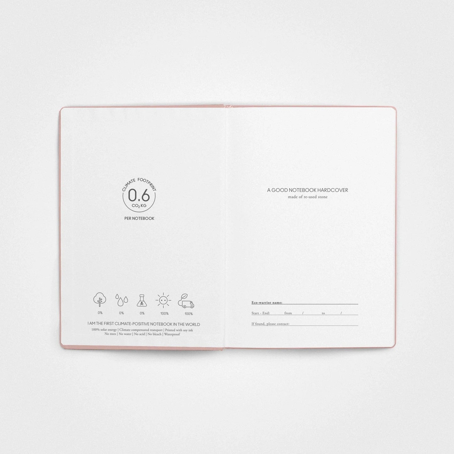 Dieses klimapositive Steinpapier-Notizbuch ist (wie) für unseren Planeten gemacht. Kein Holz, keine Wasserverschwendung, und keine schädlichen Chemikalien. Nur seidig weiche, wasserfeste Seiten.