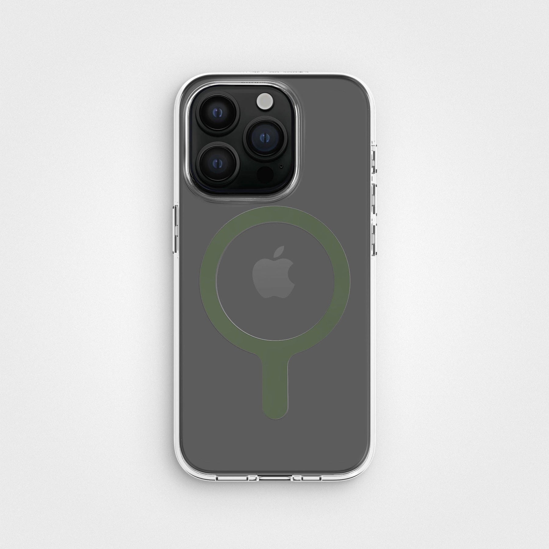 Moss Green - Avtagbar MagSafe-ring & Klart mobilskal-paket