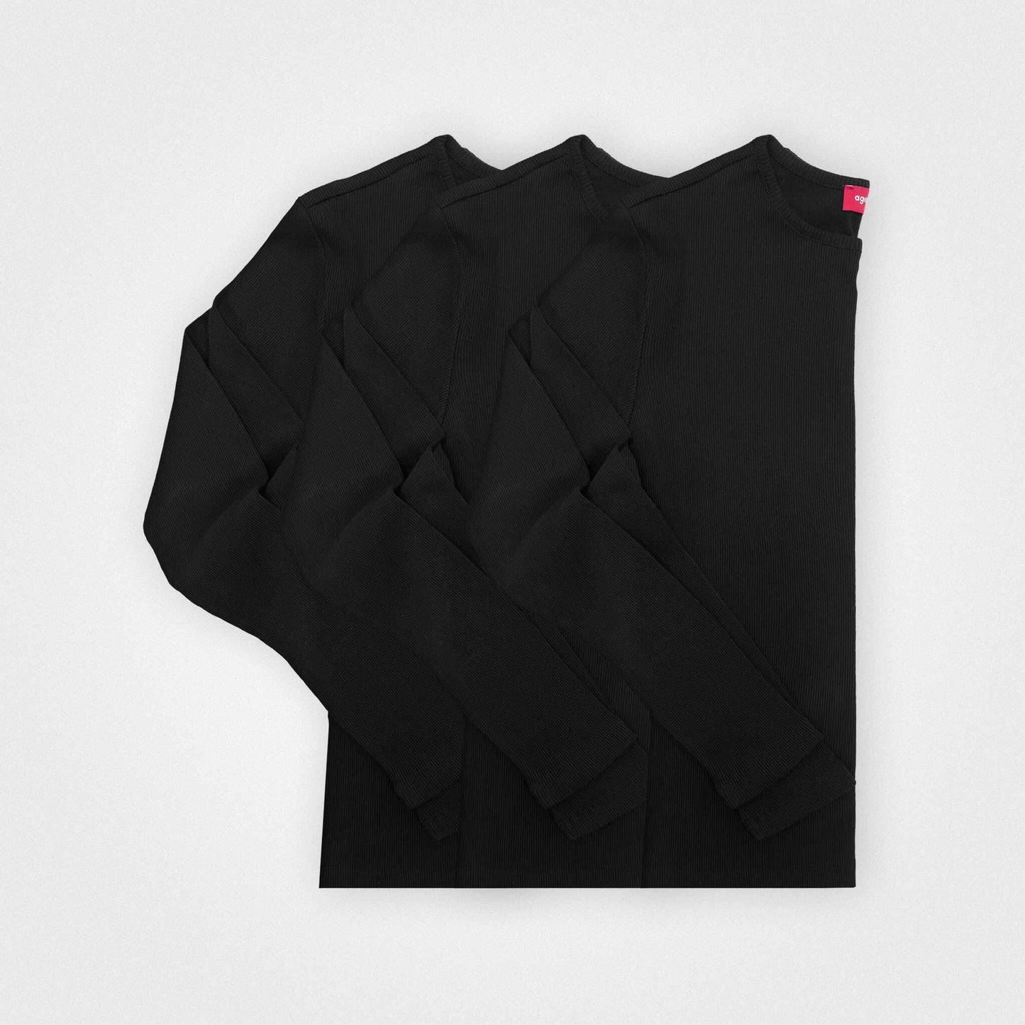 Med perfekt passform och kvalitet är vår svarta ribbade långärmade topp tillverkad av ekologisk och återvunnen bomull ett stilfullt och hållbart basplagg för garderoben. Få den i en förpackning om 3.